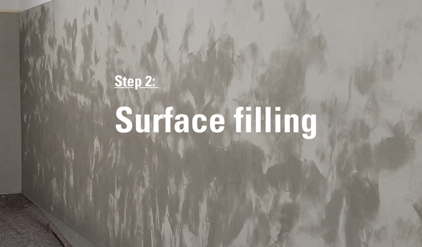 Apply the first layer of thin scratch coat with Emcefix-Spachtel F lang & Scratch coating.