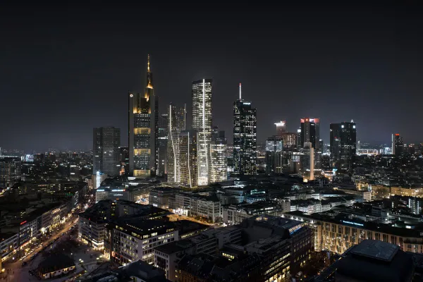 View of the construction site of the FOUR Quarter in Frankfurt am Main, which was built using the top-down construction method.